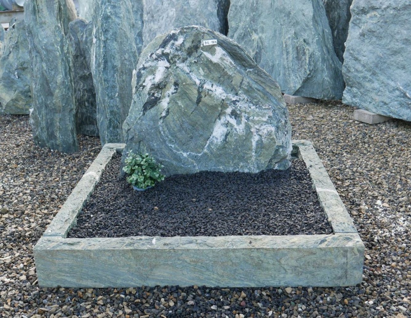 Einfassung in Dorfer-grün, (4-tlg., oben gespalten, innen bossiert)